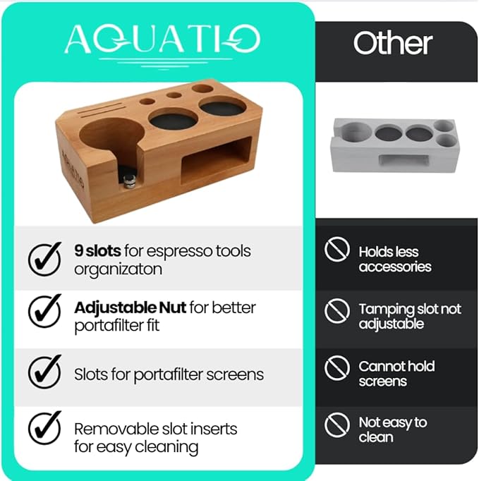 - The Ultimate Coffee Lover’s Gift – Whether for yourself or a fellow coffee enthusiast, this beautifully crafted espresso tamping station by AquatiQ makes a stylish and practical addition to any home or professional barista setup.