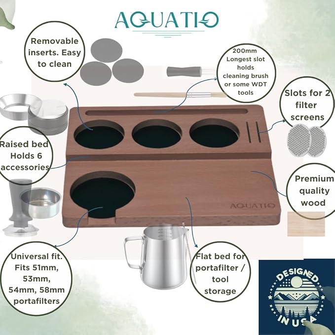 - All-in-One Espresso Hub – Keep your coffee station clutter-free with dedicated slots for your tamper, distributor, portafilter, and cleaning brush—everything you need in one place!