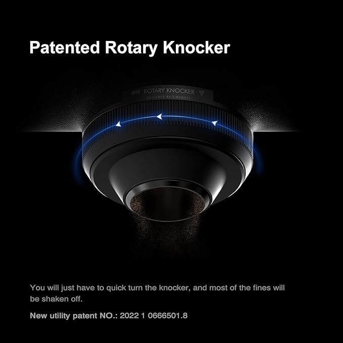 - [ Patented Rotary Knocker ] Ordinary coffee grinder lt's usually difficult to clean fines thoroughly from the grinderspout. Sculptor 078S coffee grinder designed this rotary knocker to have fines cleanedeffectively, You will just have to quick turn the knocker, andmost of the fines will be shaken off.