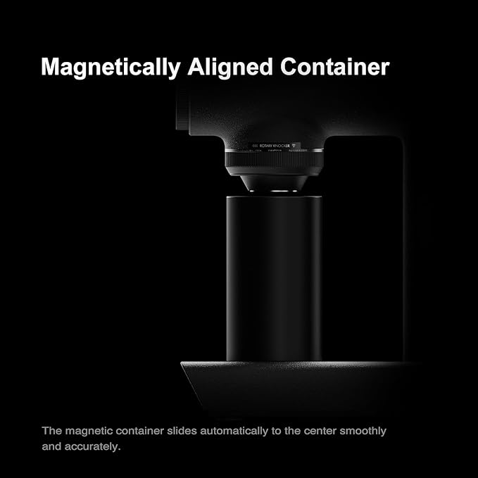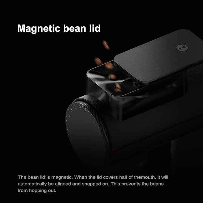 - [ Magnetic Alignment Container ] The magnetic lid ensures a snug fit when covering the bean entrance, Just place it on the base and the container will get alignedautomatically to the center smoothly and accurately. Experi-ence the magic of magnetically aligned containers for yourcoffee beans.