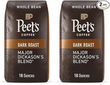 • Contains two (2) 18 Ounce Bags of Peet's Major Dickason's Blend Whole Bean 100% Arabica Coffee