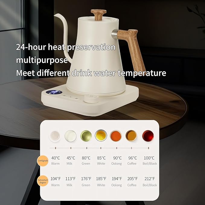 Electric Kettles, Gooseneck Electric Kettle, ±1℉ Temperature Control, Stainless Steel Inner, Quick Heating, for Pour Over Coffee, Brew Tea, Boil Hot Water, 0.9L (White)