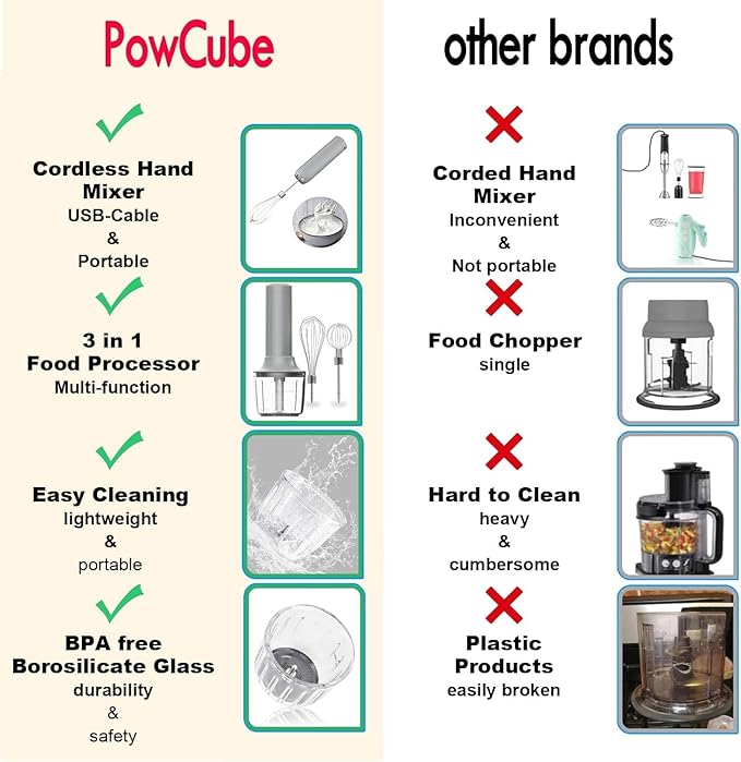 - Quick & Easy Cleanup: Cleaning is a snap! Simply detach the mixing cup, whisk, or blades for rinsing. The stainless steel attachments and glass cup are dishwasher-safe, while the motor unit can be wiped down with a towel or sponge. Please note: the electric base should never be submerged in water. Enjoy hassle-free maintenance with this essential food processor for your kitchen.