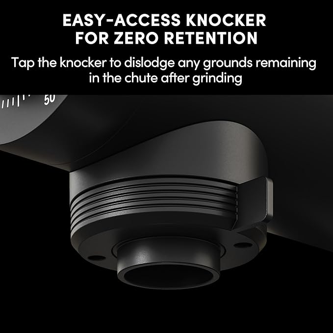 - 【True Zero Retention】Geimori coffee grinder’s vertical burr and spout system drastically reduces residue buildup, achieving a true zero retention design (<0.1g). Combined with a knocker clears out remaining coffee for pure flavor and less waste.