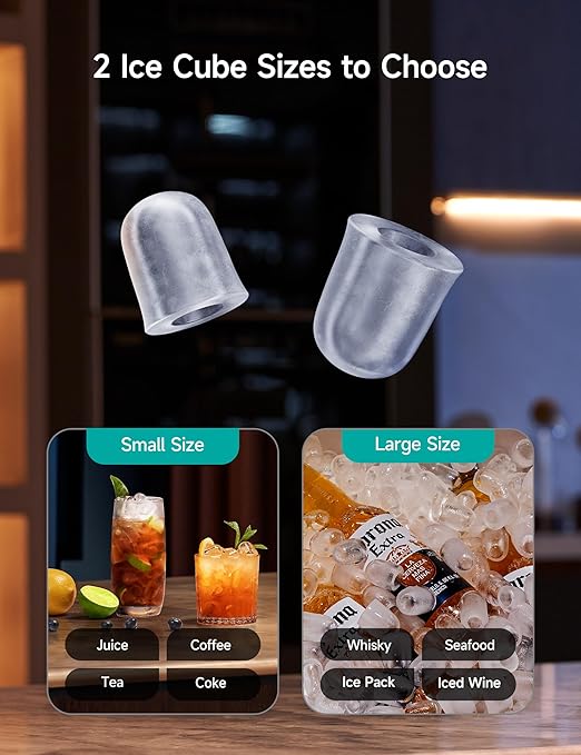 - Light Up the Night: The built-in ambient lighting lets you enjoy late-night ice without having to turn on the lights. From late-night drinks to morning coffee, the HiCOZY ice maker is the perfect tool to cool in style. Bring delicious ice and style into your kitchen.