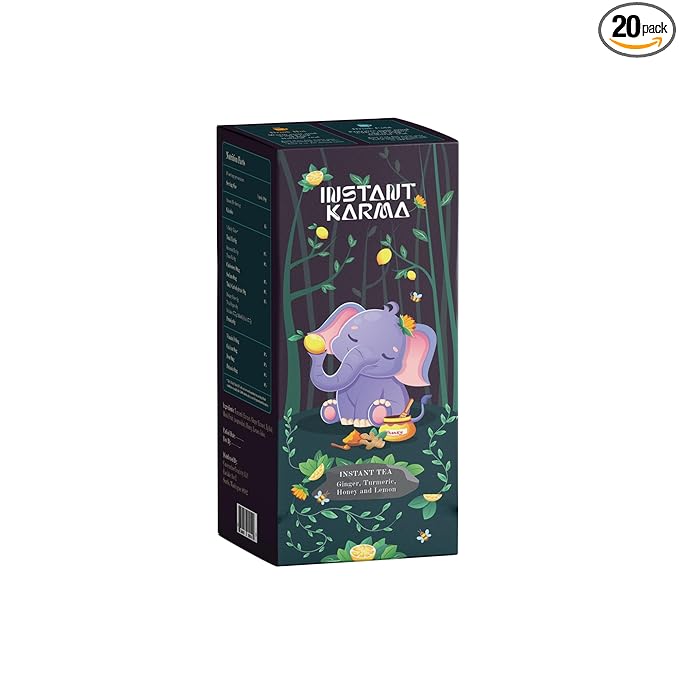 Instant Karma Tea | Ginger, Turmeric, Honey & Lemon Instant Tea | All-Natural, Caffeine-Free, No Added Sugar | Soothing & Revitalizing | 20 Sachets (Ginger, Turmeric, Honey, and Lemon)