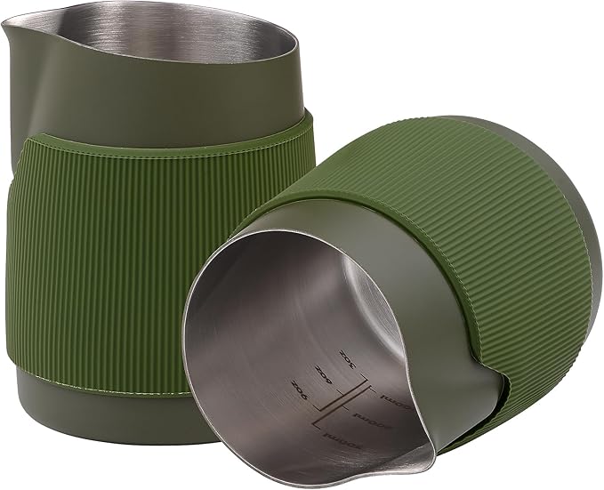 - HEAT-RESISTANT GRIP - This stainless steel steamer cup feels secure and balanced in your hand thanks to the silicone heat-resistant grip. No need to worry about it slipping or making messes while crafting the perfect latte