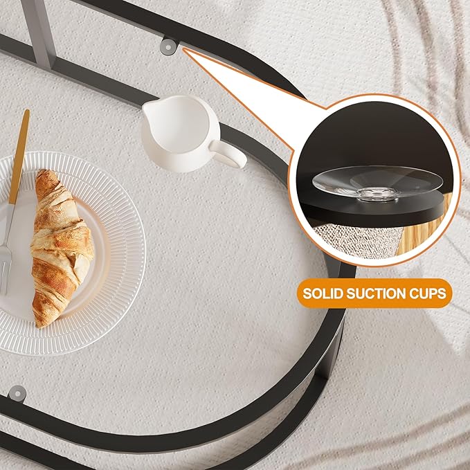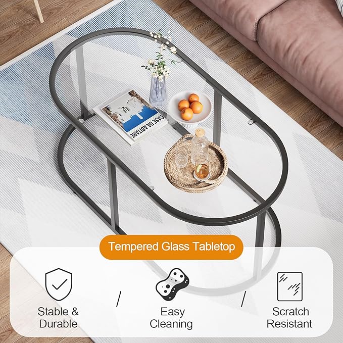 - 【UNIQUE & ELEGANT】The oval coffee table with modern design, clear solid glass top with black metal frame, adding a touch of beauty to your living room or office.