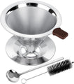 Load image into Gallery viewer, Pour Over Coffee Dripper, LOOFORE Stainless Steel Coffee Filter, Metal Cone Filter Paperless Reusable Coffee Filter Single Cup Coffee Maker 1-2 Cup, with Spoon and Silicone Tray, Cleaning Brush