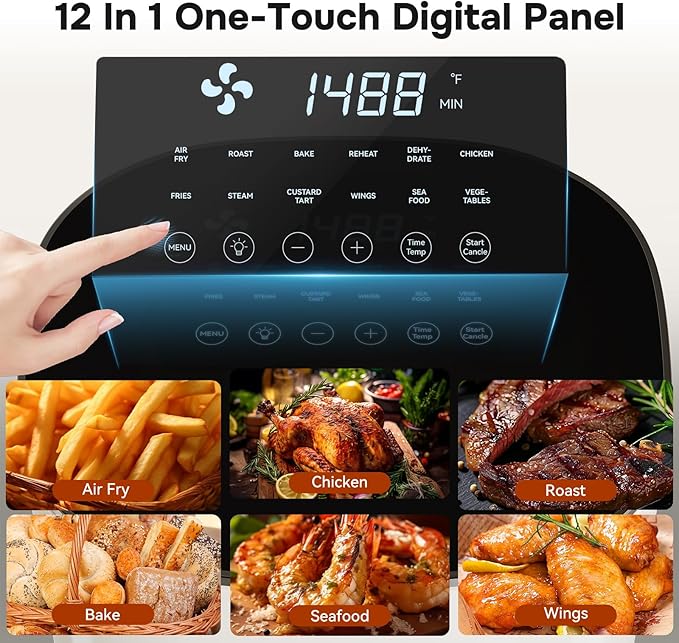 - Fast Cooking & Simplified Set-Up : With advanced rapid air circulation technology and 12-in-1 preset modes, makes you prepare meals quickly and easily. From crispy fries and juicy wings to roasted veggies and desserts, it’s your all-in-one kitchen solution for busy days
