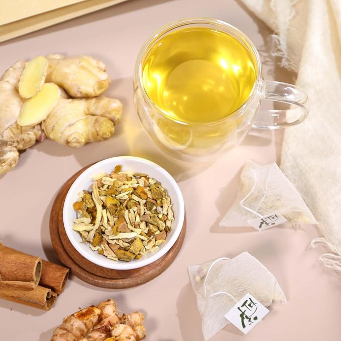 FullChea - Turmeric Ginger Cinnamon Tea Bags, 50 Count, 2g/bag - Premium Turmeric, Ginger, Cinnamon - Non-GMO - Caffeine-free - Aid Digestion & Boost Immunity