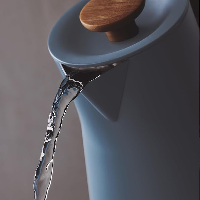 Fellow Corvo EKG Pro Electric Tea Kettle - Quick Heating, Precise Temperature Control Electric Kettle, Scheduling, Built-in Brew Timer for Boiling Water - Hazy Blue with Maple Handle - 0.9 Liter
