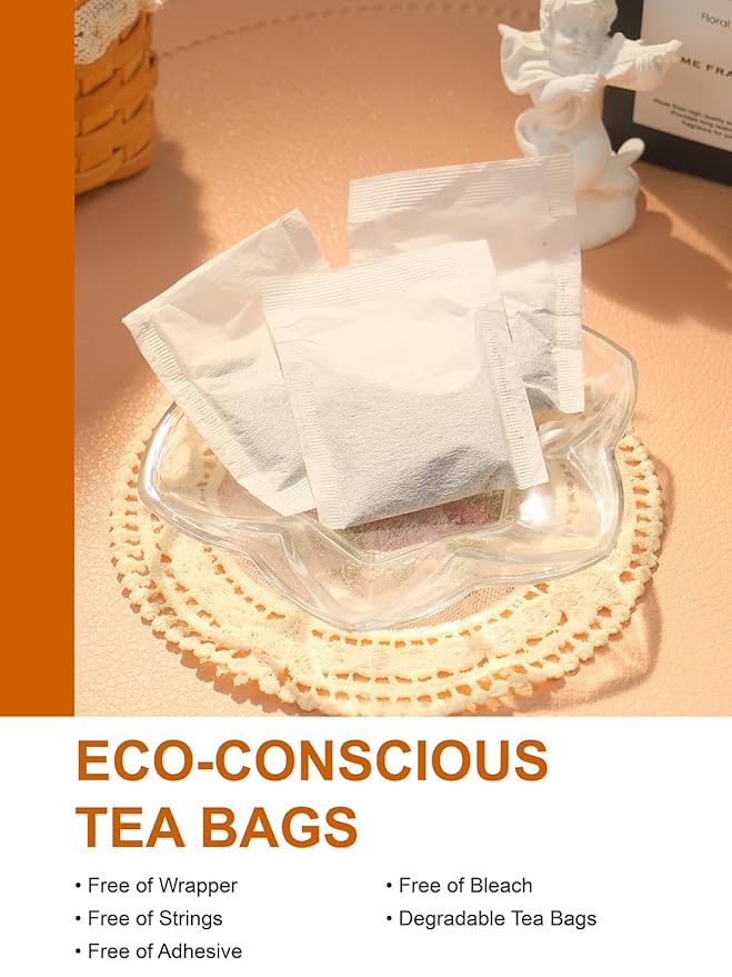 - [100 COUNT ECO-CONSCIOUS TEA BAGS] - Our premium tea bags are made from non-GMO plant fiber, and tea bags are unbleached and compostable. No string and no tag. No extra waste - just healthy & delicious tea!