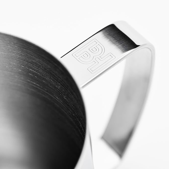 - REINFORCED LASER-WELDED HANDLE: The stainless steel milk frothing pitcher features a strong laser-welded handle ensures durability and withstands heavy commercial use without risk of detachment.