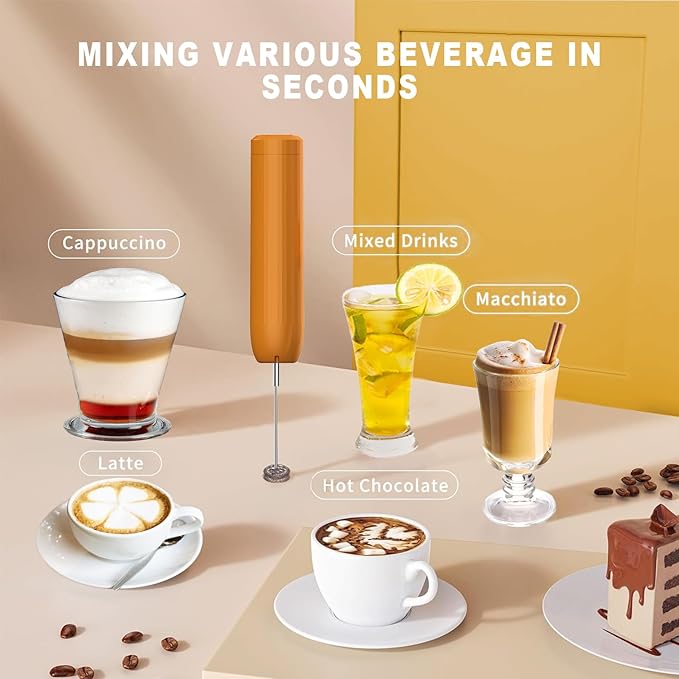 - Effortless Beverage Creation: This hand mixer come with a frother wand, you can easily prepare your favorite drinks like coffee, lattes, cappuccinos, and milk-based beverages. Achieve creamy, velvety foam in seconds, allowing you to effortlessly prepare a wide range of drinks you love. Whether you're frothing milk for a rich cappuccino or mixing up a frothy latte, this milk frother simplifies the process.
