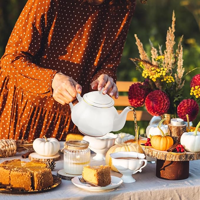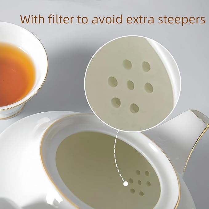 - NOTICE:Our bone china has many manual processes so the teapot cannot be as perfect as machine-made products, especially the gold banding was painted by artisan