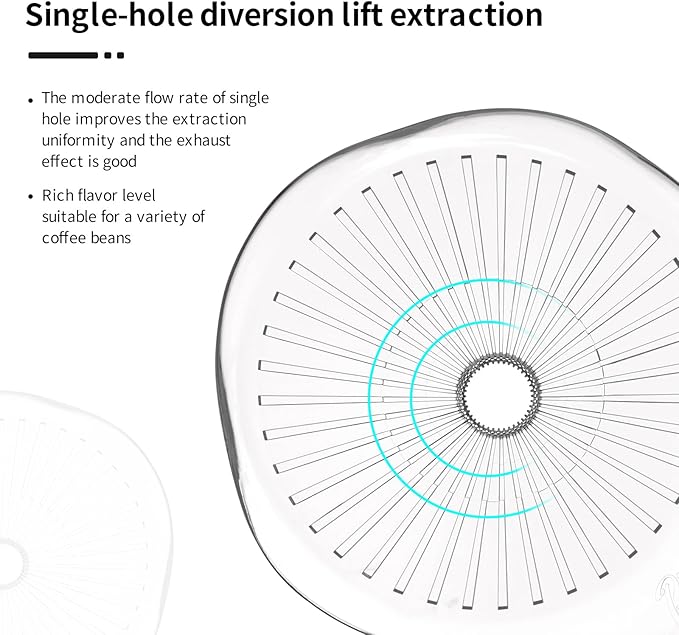 - Single Hole Drip Design:The single hole in the dripper allows for a controlled flow rate, optimizing the extraction process for consistent and even brewing. This feature also improves the release of coffee’s complex flavors, enhancing depth and richness in your cup. Perfect for any coffee bean, the single-hole design lets you explore different flavor profiles with ease.