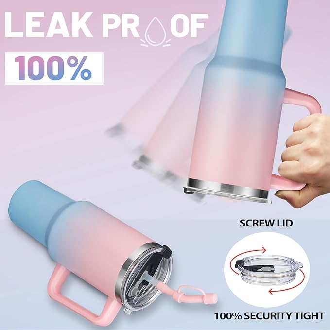 Insulated Tumbler Cups for Hot and Cold - 40 oz Travel Mug with Handle, Spill Proof Straw and Spout Lid, Leak Resistant Stainless Steel Water Bottle Keep Cold-34H, Dishwasher Safe