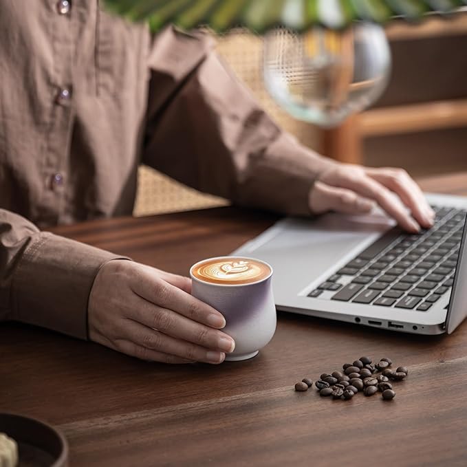 - On-the-Go Essential: Heat-Safe & Durable Handcrafted from premium lead-free ceramic, kiln-fired at 1280°C for food safety, sturdiness and heat resistance. Lightweight design suits home, work or outdoors—smooth rounded rim & fingerprint-resistant finish offer comfy touch and easy cleaning. Ideal for daily espresso, lattes, tea and juices.
