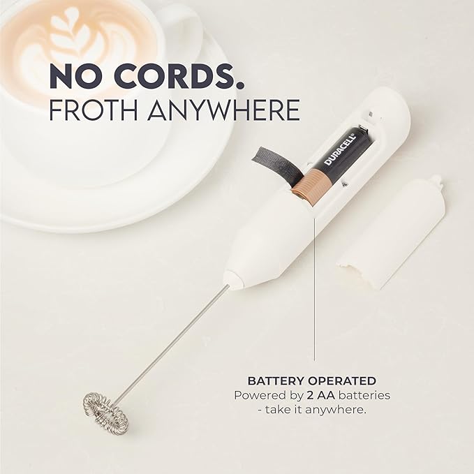 - Ready to Use: Includes 2 Duracell AA batteries so you can froth right out of the box.