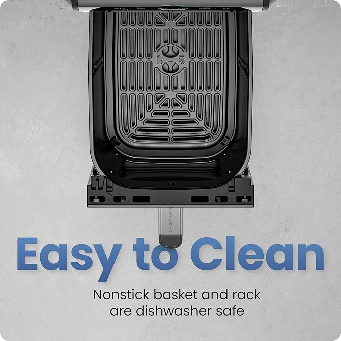 - EFFORTLESS CLEANUP: The nonstick air fryer basket makes serving and cleanup a breeze. The removable wire rack is dishwasher safe, and the basket itself wipes clean in seconds.