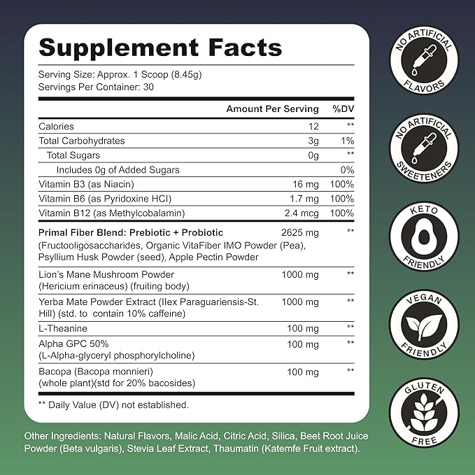 - SUPPORTS DIGESTION AND GUT HEALTH – Contains a Primal Fiber Blend with prebiotics and probiotics to promote digestion and gut balance.