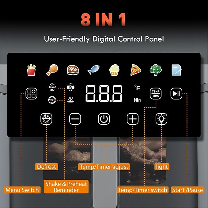 - 8-in-1 Versatility & Color Touchscreen for Effortless Cooking:Enjoy 8 versatile cooking presets for all your favorite dishes. The intuitive color touchscreen is responsive, easy to clean, and ensures precise temperature control (160℉ to 400℉), delivering perfectly cooked meals with enhanced flavor and texture every time.