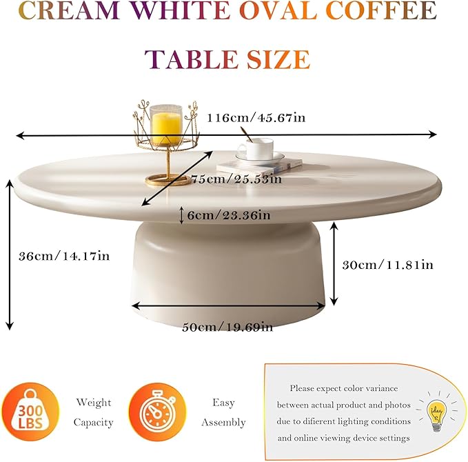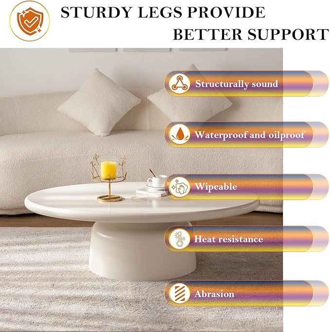 Chic Coffee Table with Smooth Fininsh & Stable Large Base, Minimalism Low Center Table for Farmhouse Living Room (J-Oval)
