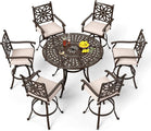 - 7-Piece Bar Height Patio Dining Set: Transform your outdoor space with the PHI VILLA 7-piece dining set. This set features 6 stylish cast aluminum swivel bar stools and a spacious round high bar dining table. Designed for elegance and comfort, it’s perfect for enhancing any backyard oasis, garden, deck, or lawn
