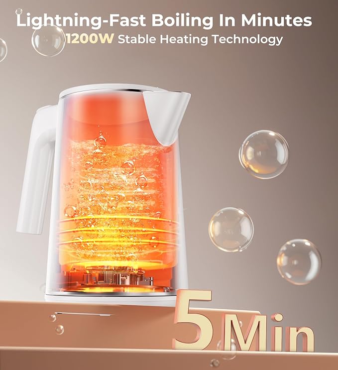 - 【Smart Efficient Electric Kettle】Designed for speed and convenience, this electric tea kettle boils water in minutes. Its automatic shutoff activates when water reaches the desired temperature or when the kettle is empty, saving energy and preventing overheating