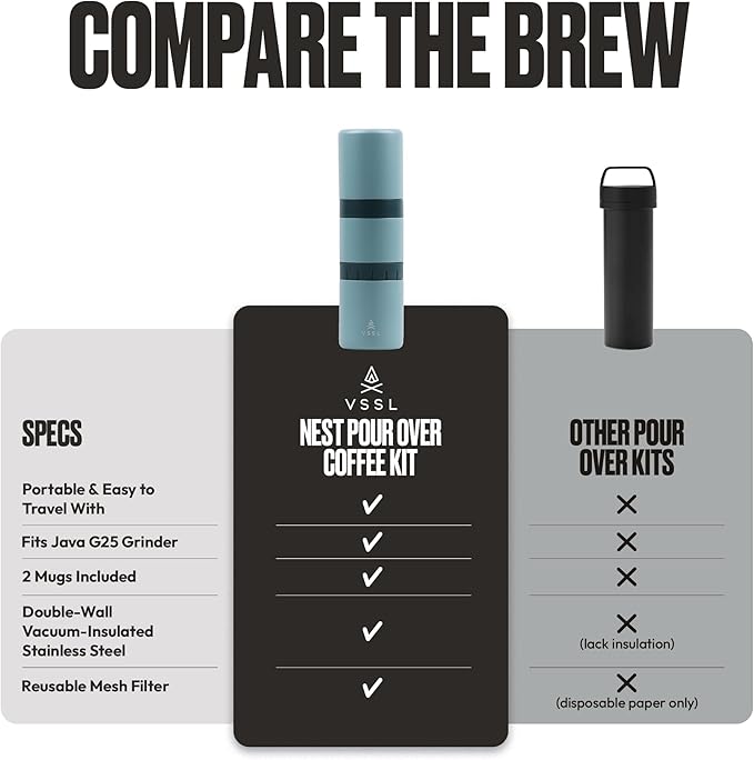 - Built to Last a Lifetime - VSSL Products are built to adventure as hard as you do. Covered by our Geared For Life warranty, our travel pour over coffee kit is protected against manufacturer defects for life.