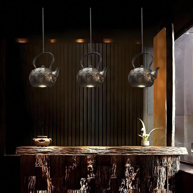 Chinese Retro Tea Kettle Pendant Light Handmade Craft Ceiling Mount 9 Inch for Dining Room Bar Bedroom 3000k