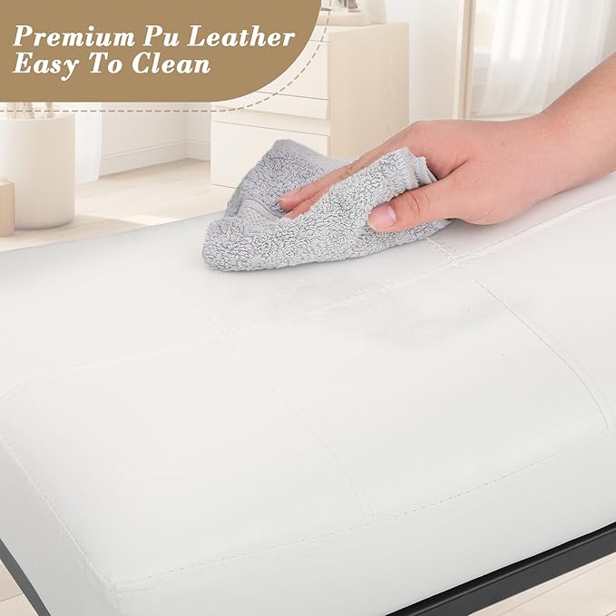 Athena Collection Counter Height Bar Stools Set of 2, 31.5 Inches Saddle Bar Stools with Leather Upholstered and Metal Legs, Backless Barstools for Counter, Kitchen Island, Dining Room, White