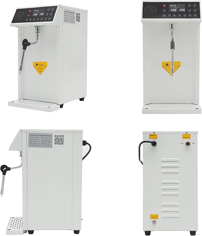 - LARGE CAPACITY & CONTINUOUS STEAM: With an 8L (2.11 Gal) boiler capacity, this machine can produce steam continuously for 20 minutes, making it ideal for high-demand settings like coffee shops, milk tea stores, and bars.