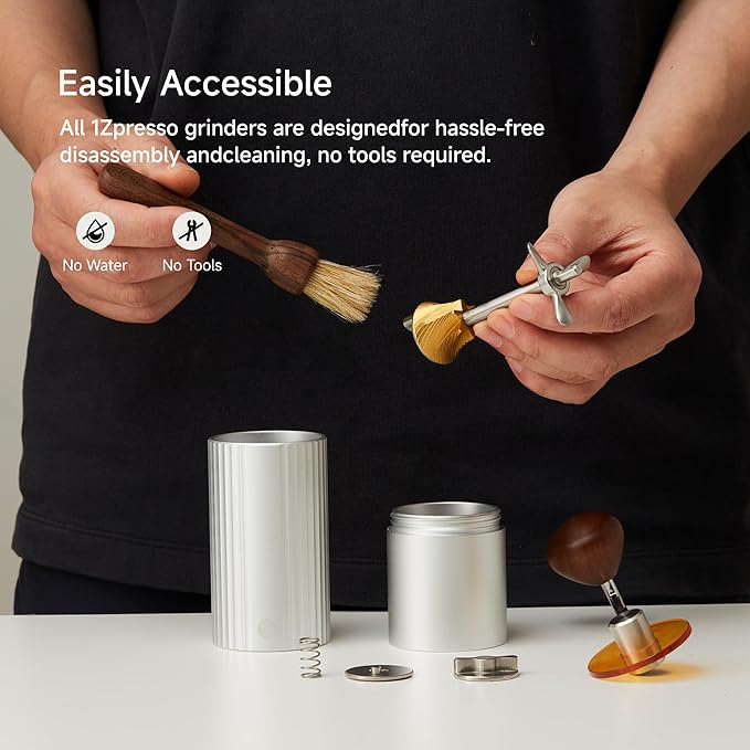 - 【EASY TO CLEAN】 - innovative design ,can be easily disassembled without tools, Detachable outer ring burrs,Thoroughly clean the deep roasted coffee oil, discover your beans real flavor. Bonus: includes a free cleaning brush for added convenience.