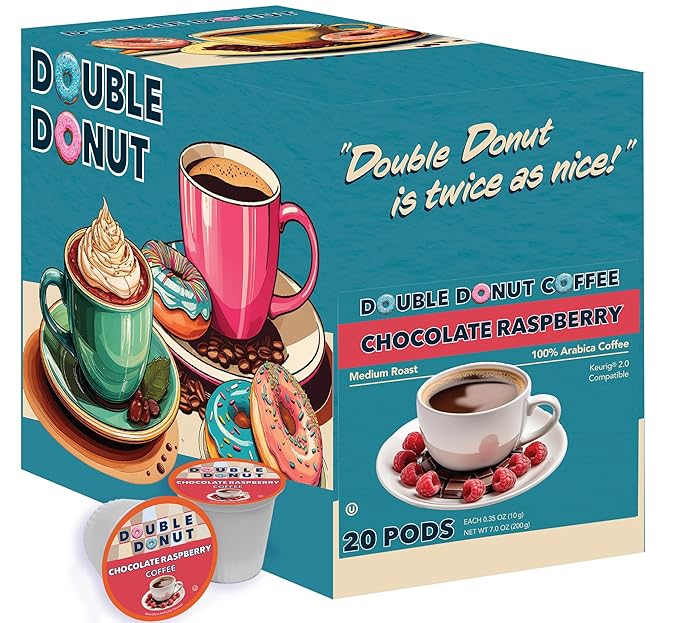 Double Donut Coffee Chocolate Raspberry Flavored Coffee Pods, Medium Roast Coffee, compatible with Keurig K Cups Brewers, 20 Count