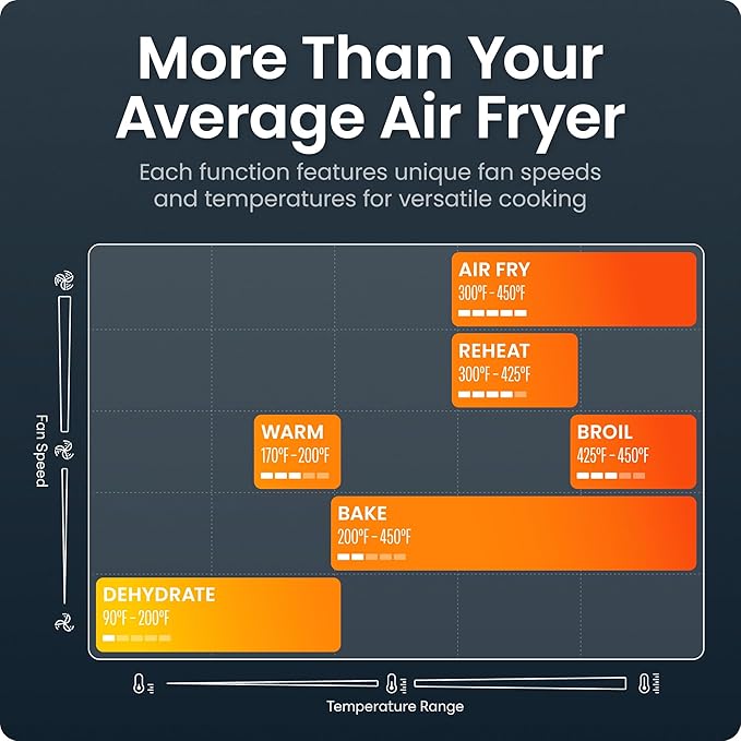- Special Feature : 450°F Max Temperature, 6 Cooking Functions, 8-Quart Basket, Dishwasher-Safe Basket, Easy-View Window and Interior Light, PFAS-Free Ceramic Basket, Up to 40% Faster Cooking 450°F Max Temperature, 6 Cooking Functions, 8-Quart Basket, Dishwasher-Safe Basket, Easy-View Window and Interior Light, PFAS-Free Ceramic Basket, Up to 40% Fast… See more