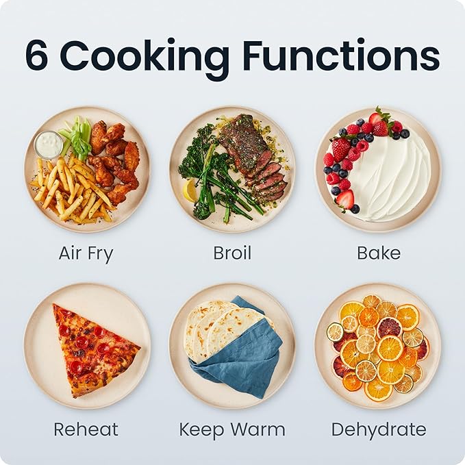 - SIX COOKING FUNCTIONS: This 8-quart air fryer does more than just convection cooking. With six functions to choose from, the Crispinator also works as a broiler, dehydrator, keeps your food warm, or even bakes like a traditional oven.