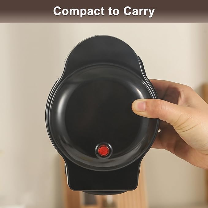 - Easy to Use and Store: With this small waffle iron, anyone can become an expert waffle maker, no additional setup required, just plug in and use immediately, very simple and convenient. The small and cute appearance design makes it take up almost no space, which is very suitable for kitchen, apartment, RV and other scenarios, you can easily store it.