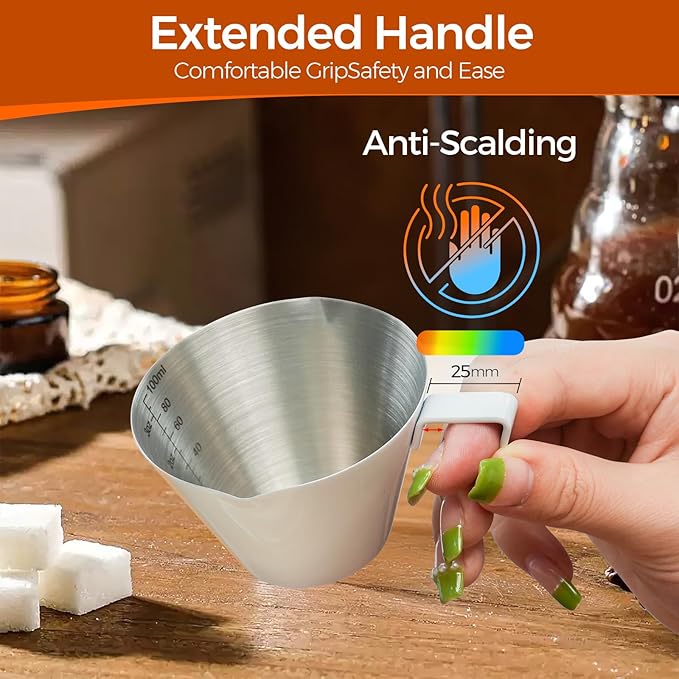 YARRAMATE Stainless Steel Espresso Shot Cup, Double Spout Metal Espresso Measuring Cup with V-Shaped Mouth, Espresso Accessories, 3.4OZ/100ML (White)