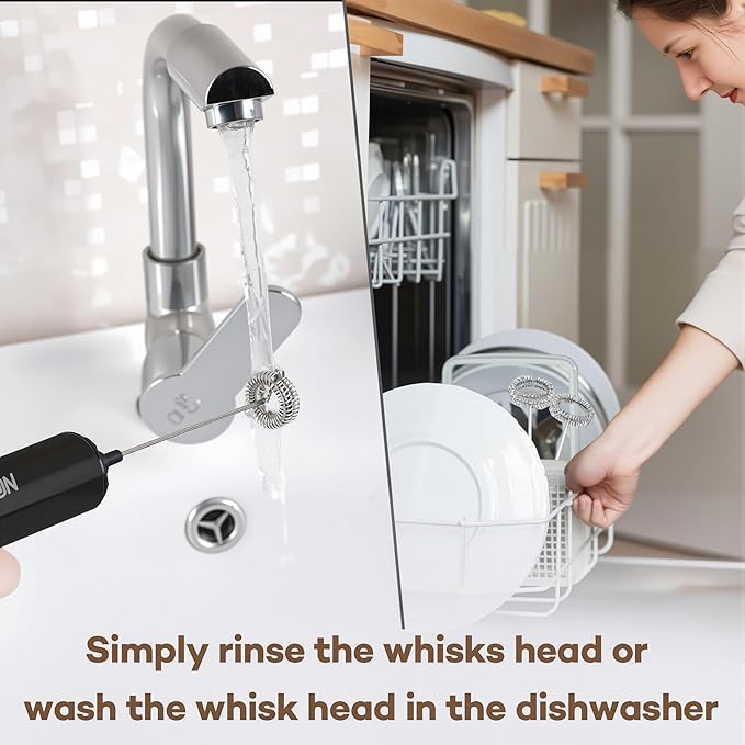 - Durable Stainless Steel & Easy to Clean- Built with stainless steel, this handheld milk frother includes a detachable whisk for quick cleaning. Designed for long-lasting performance.