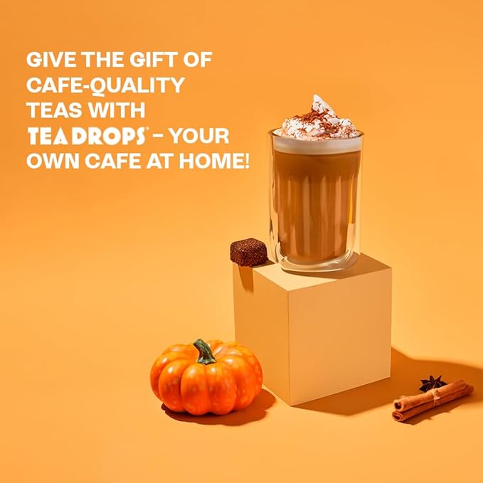 Tea Drops 30 Bulk Pack Organic Pumpkin Spice Bagless Tea - Loose Leaf, Lightly Sweetened, On-The-Go. Plastic-Free - Iced or Hot