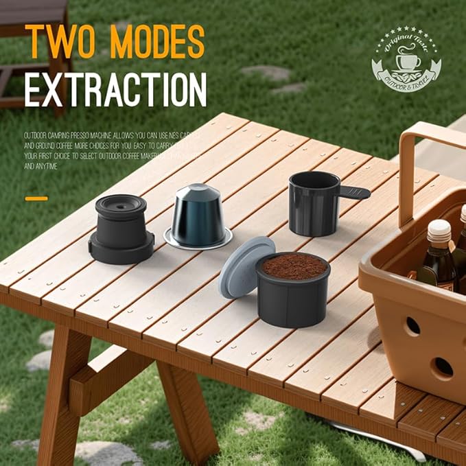 - 【2-in-1 Design】: The portable coffee machine is compatible with Nes original capsules and Ground coffee, allowing you to experience different coffee flavors