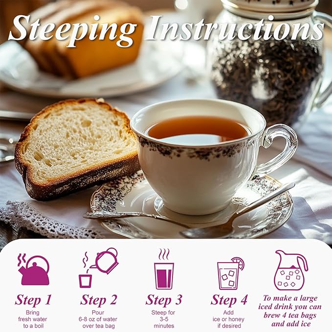 - 【ECO-Conscious & Convenience】Note: Slight discoloration of the tea bag paper is due to the presence of bergamot oil and is perfectly natural. Unbleached and compostable tea bags come packed in a re-sealable kraft bag