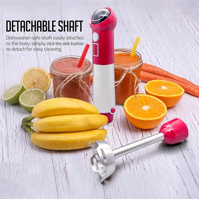 - ERGONOMIC DESIGN – Crafted for both left and right-handed users, this blender ensures comfort and steady control. The easy-grip handle and one-touch button allow you to blend directly in the container of your choice, free from the hassle of cords. Plus, the safety lock adds an extra layer of protection for peace of mind.