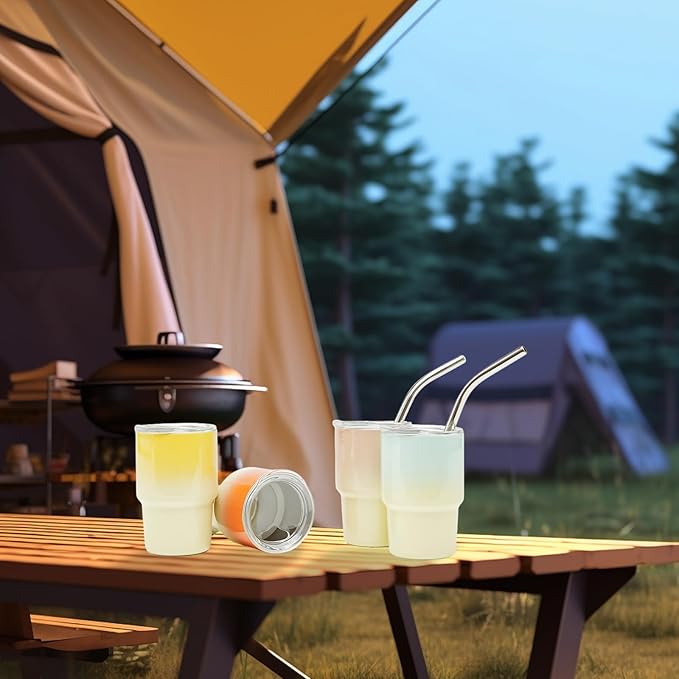 - Party Portable Set: Each set contains 6 gradient mini cups + silicone-sealed lids + bendable stainless steel straws + cleaning brush set. 3oz palm-sized design easily slips into pockets/makeup bags. Each weighs only 80g, ideal for outdoor hiking/music festival parties.