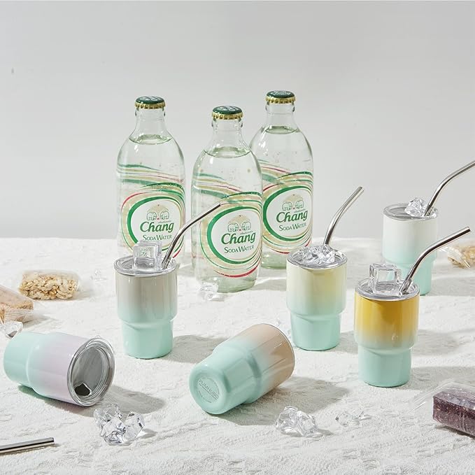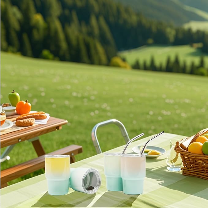 - Party Portable Set: Each set contains 6 gradient mini cups + silicone-sealed lids + bendable stainless steel straws + cleaning brush set. 3oz palm-sized design easily slips into pockets/makeup bags. Each weighs only 80g, ideal for outdoor hiking/music festival parties.