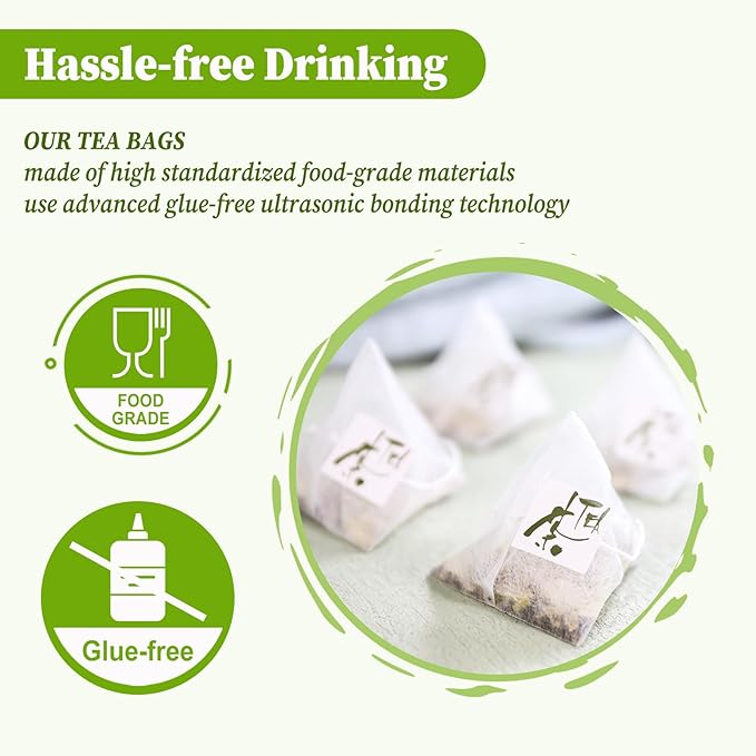 - Hassle-free Drinking: Our tea bags are made of natural corn fiber, coupled with state-of-the-art, glue-free ultrasonic sealing technology, ensuring a pristine tea experience. You can enjoy every cup of our tea with peace of mind