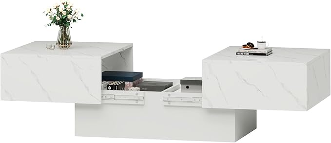 - 【Coffee table with Storage】Experience the convenience of hidden storage with our sleek white Marble Finish coffee table. Featuring two compartments under the extendable top, you can keep your essentials close at hand while maintaining a clutter-free living room.