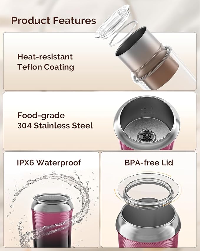 - 【Premium Food-Safe Materials】Built with 304 stainless steel for rust-proof and odor-resistant protection; BPA-free lid, safer then plastics, preventing splashes and monitoring frothing progress; heat-resistant Teflon coating for easy cleaning, also preventing milk sticking. The premium construction ensures safe, healthy frothing while being easier to clean and more durable.